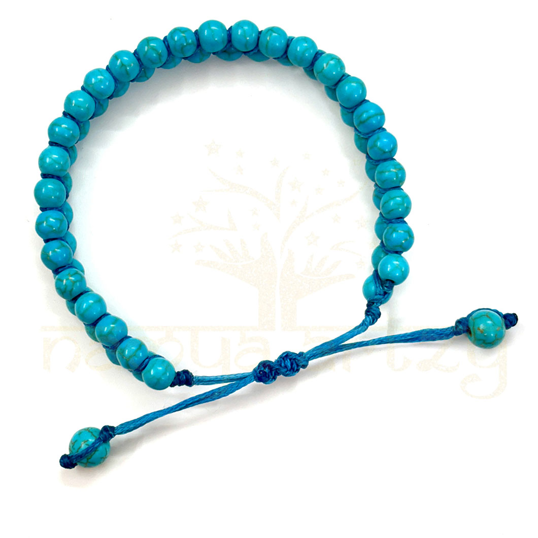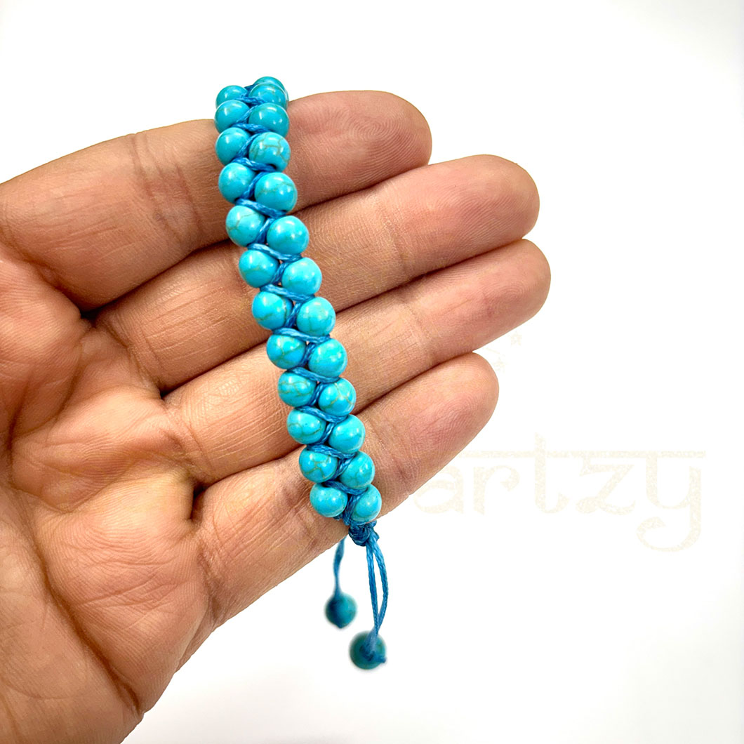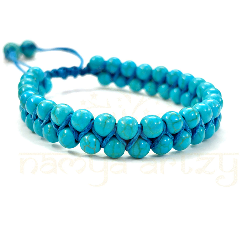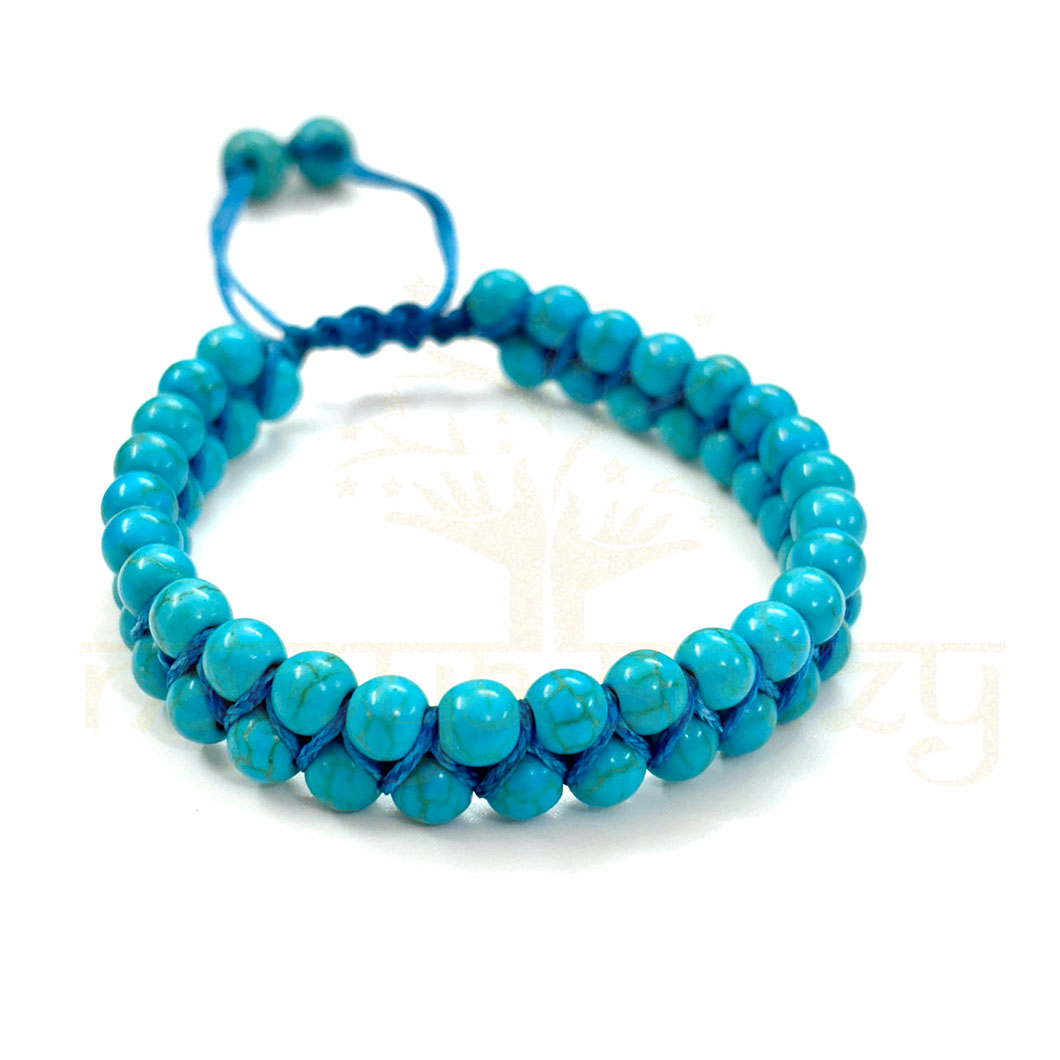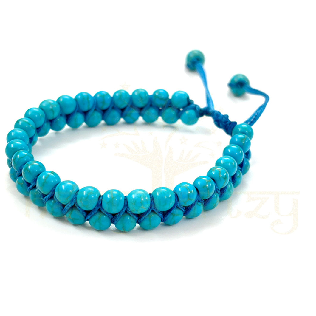 Handmade, Beautiful & Natural Turquoise 6mm Gemstones Beads Customized Hand-knotted double-line Healing Bracelet with Unique and stylish Adjustable Sliding Clasp in Turquoise color. It has an Unbreakable finish.