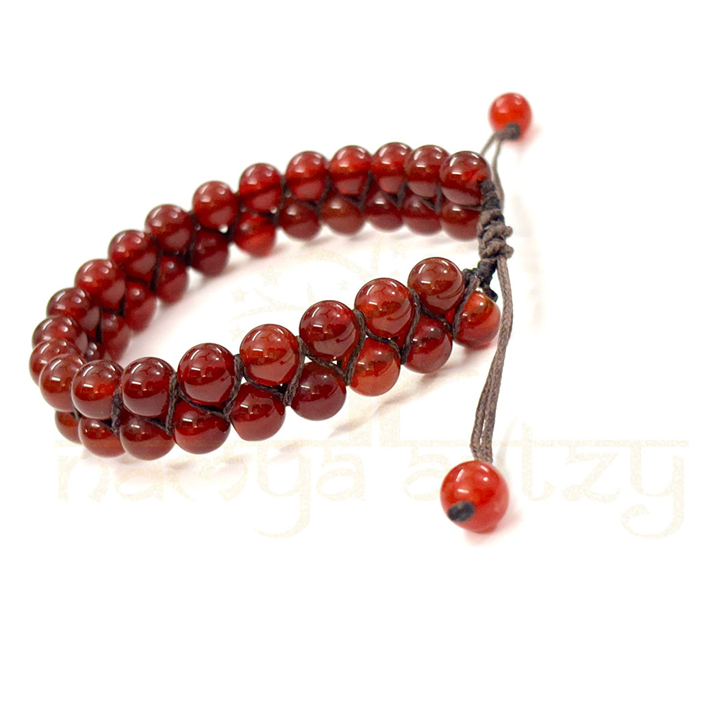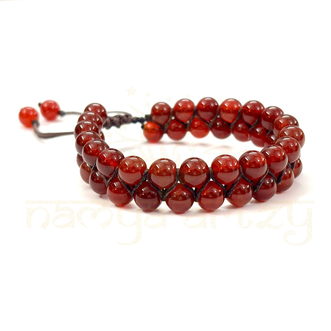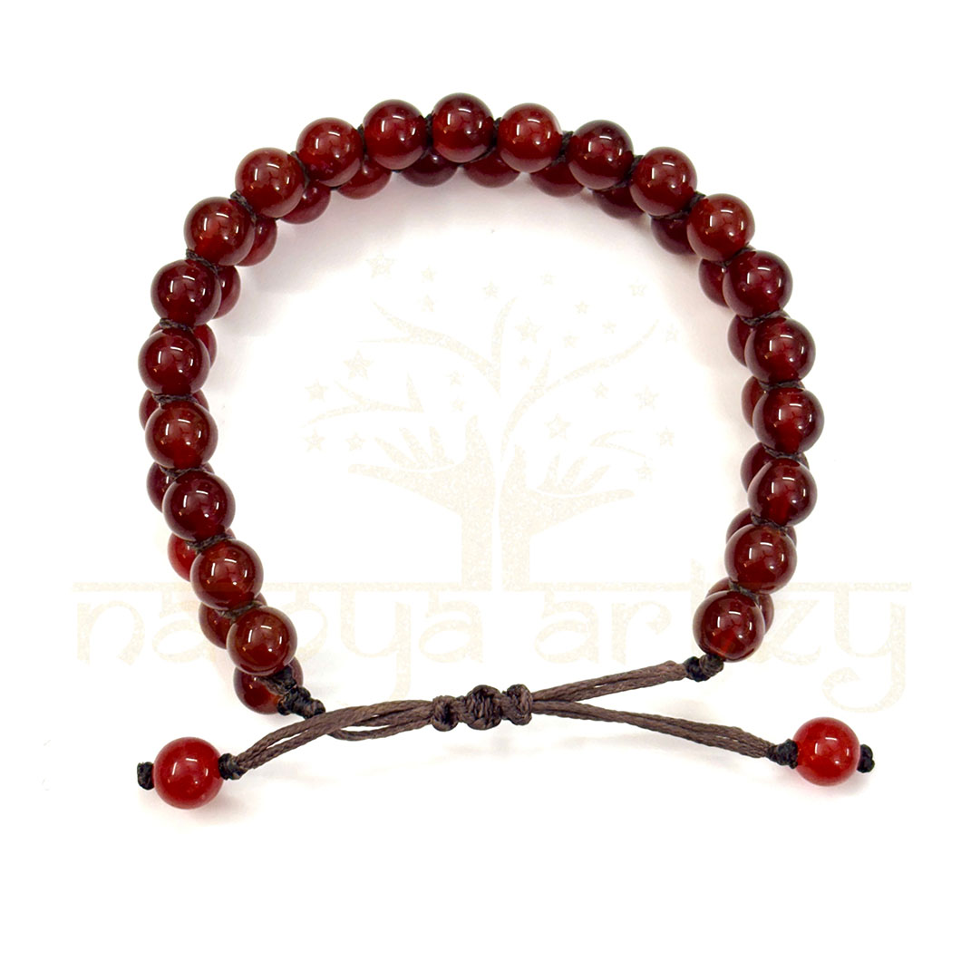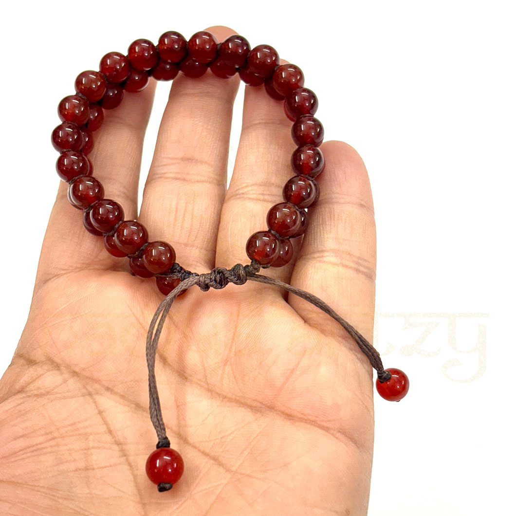 Handmade, Beautiful & Natural Red Onyx 8mm Gemstones Beads Customized Hand-knotted double-line Healing Bracelet with Unique and stylish Adjustable Sliding Clasp in Brown color. It has an Unbreakable finish.