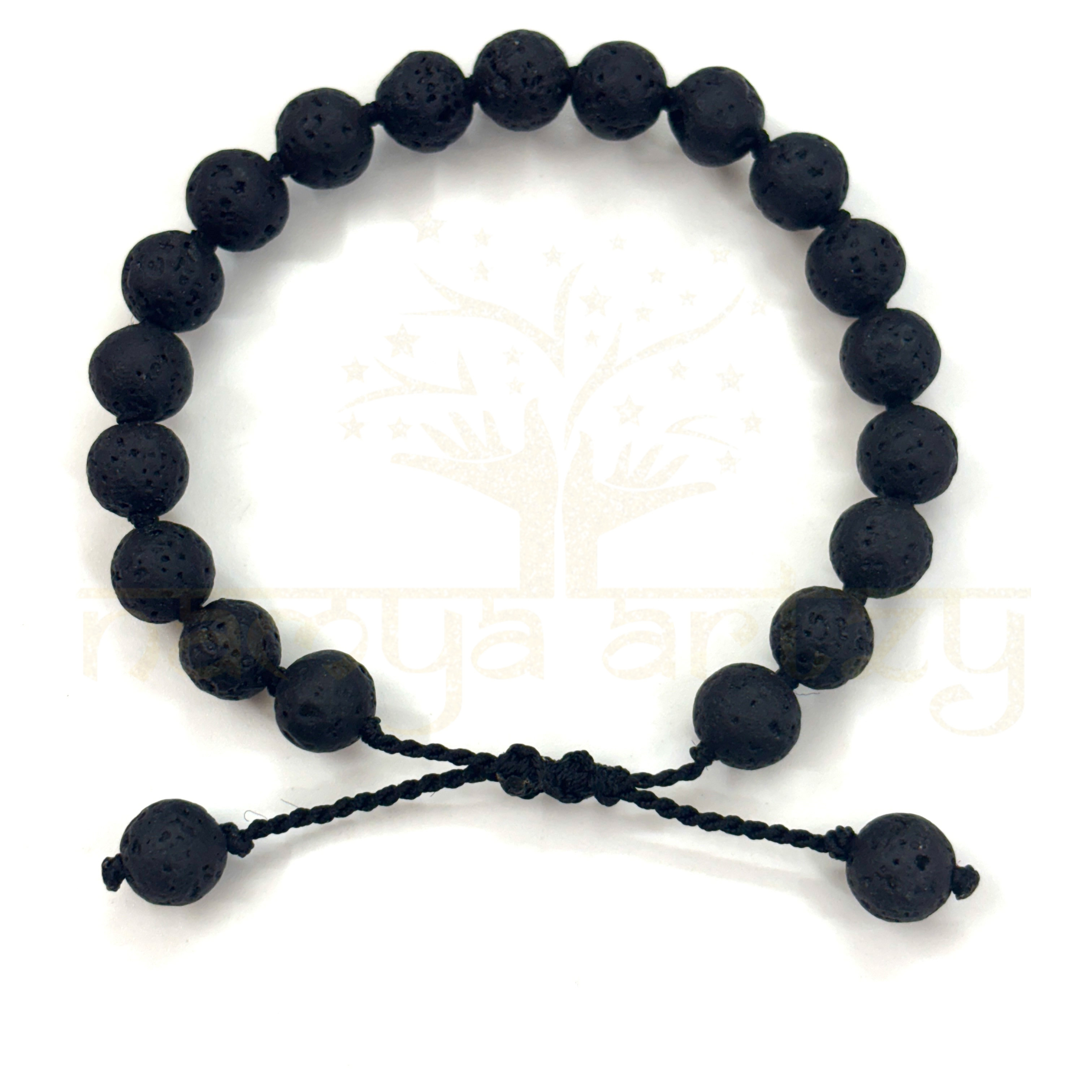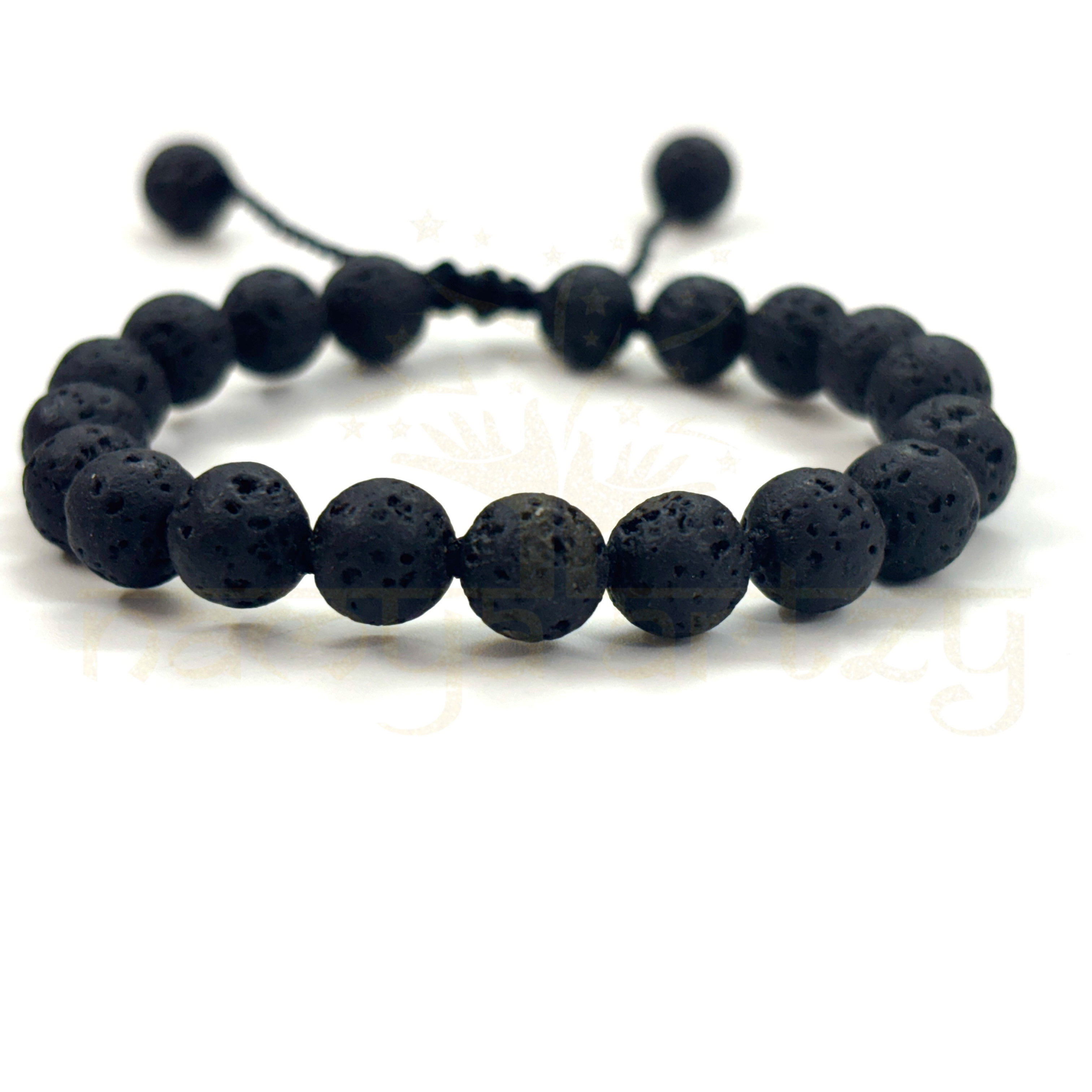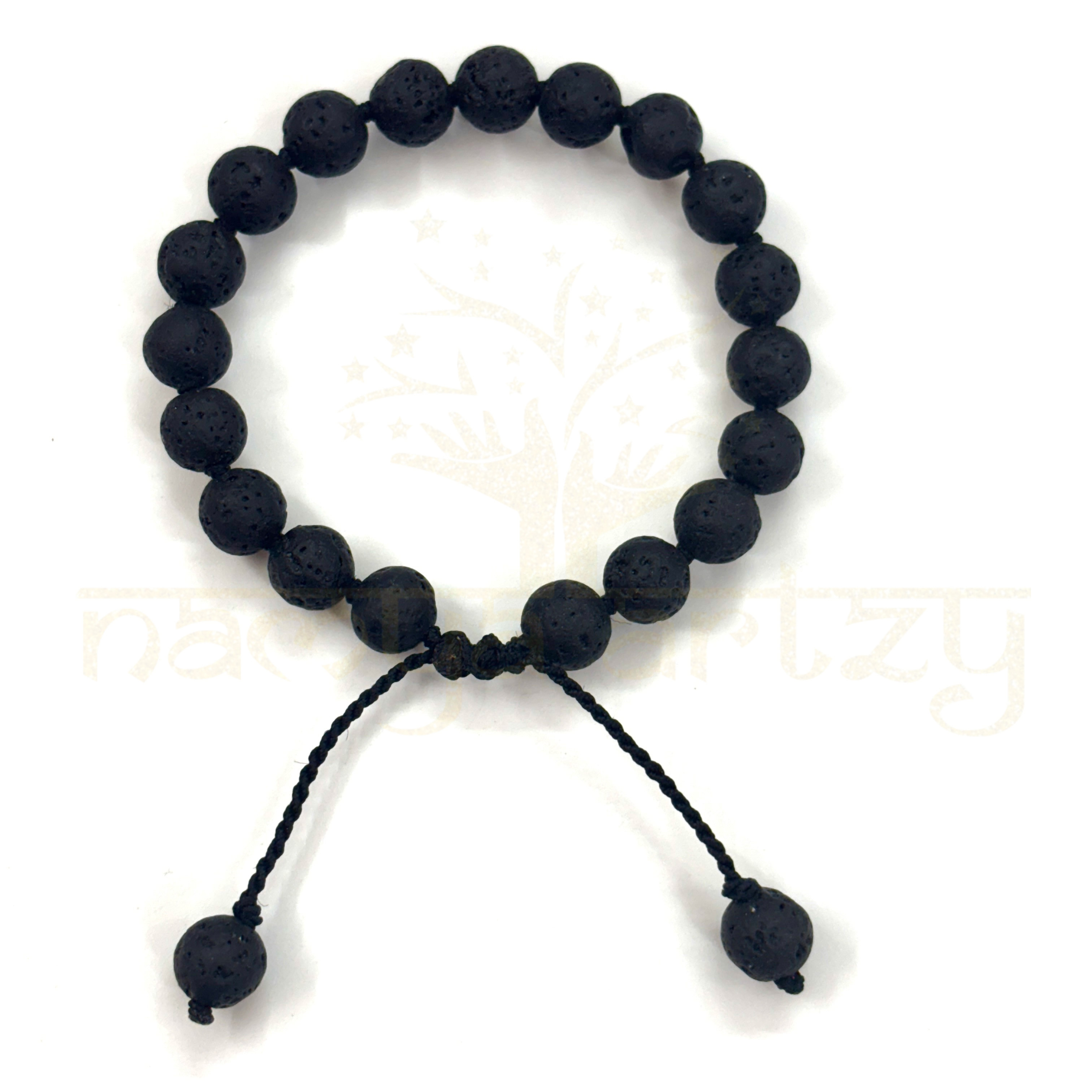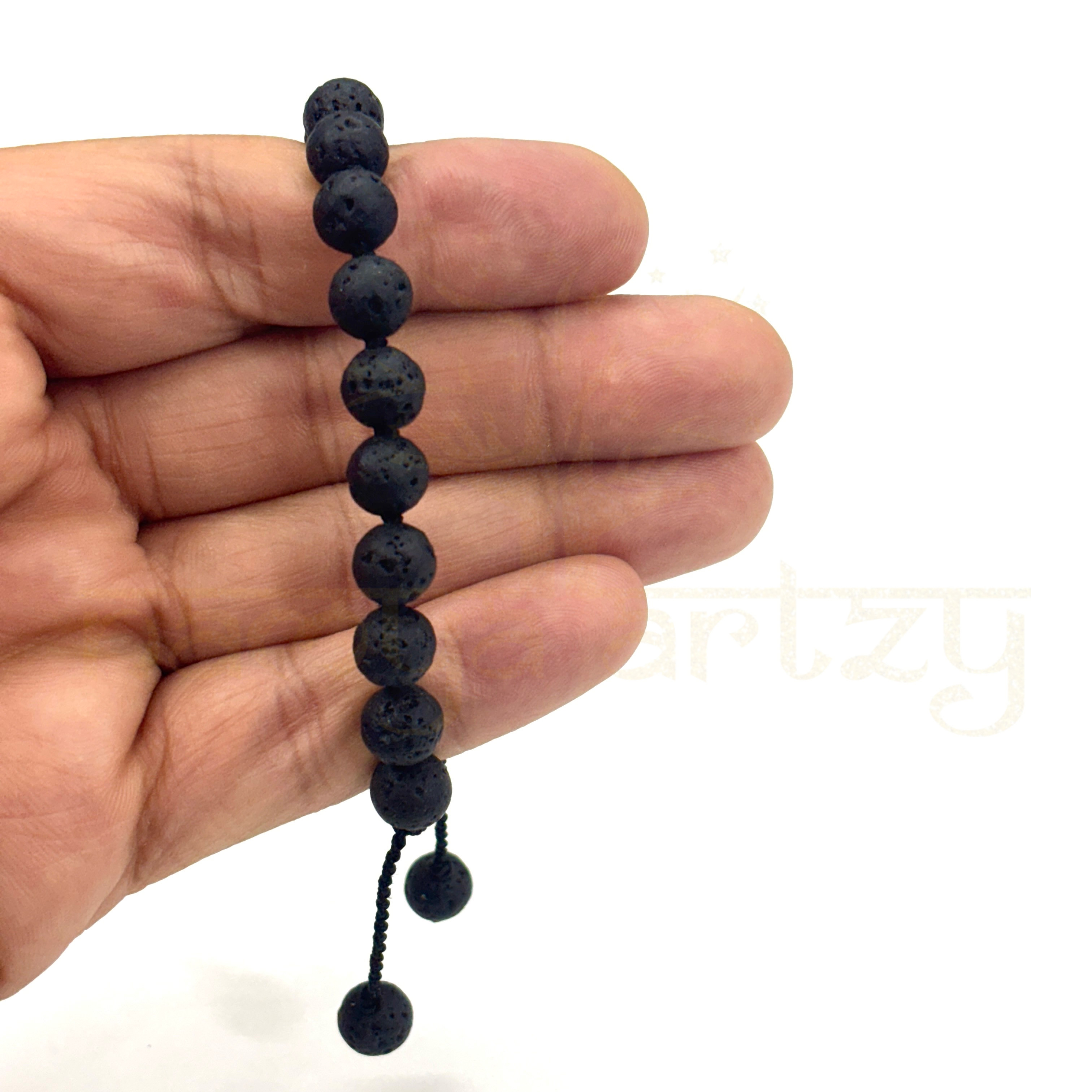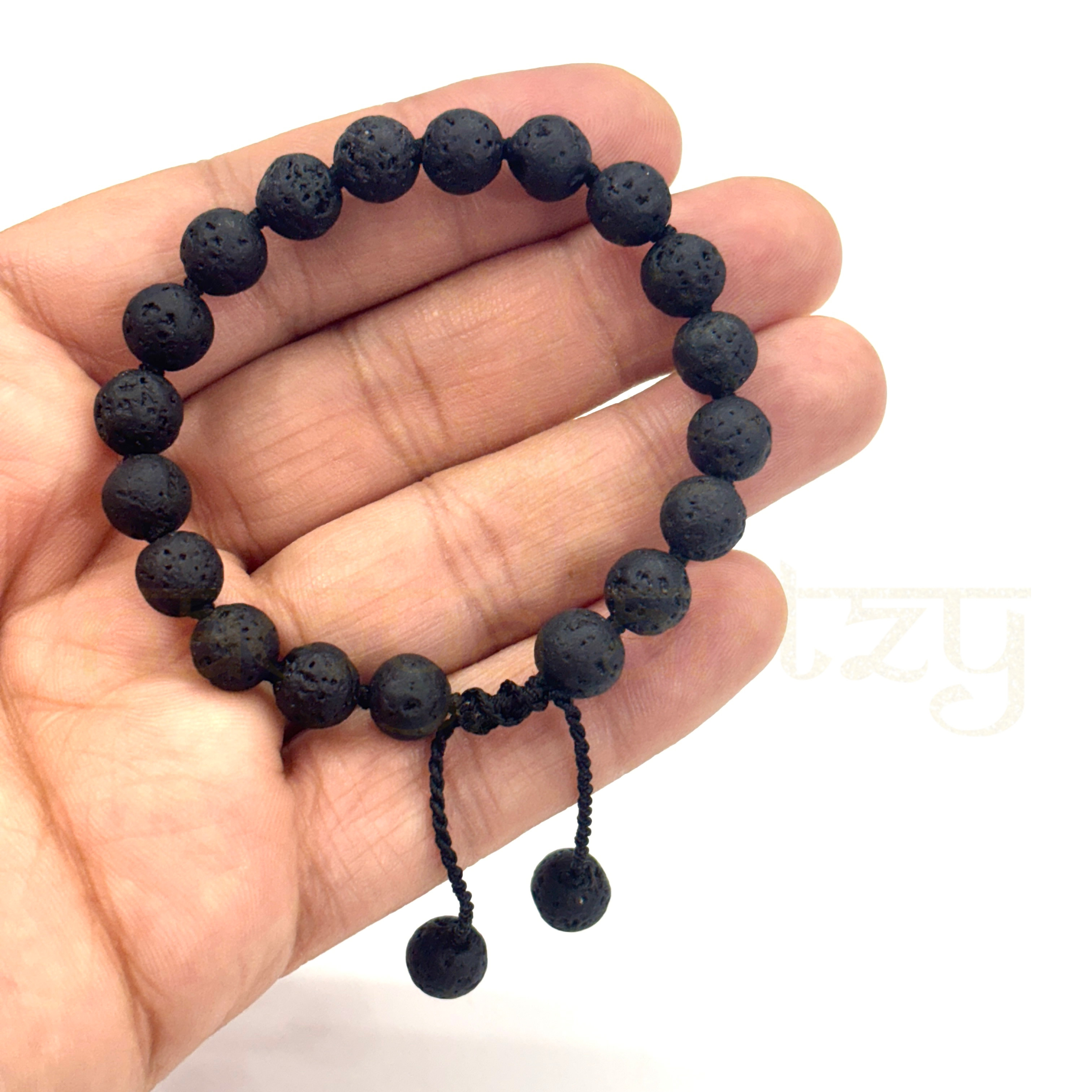 Handmade, Beautiful, and Natural 8mm Volcano Lava Gemstone beads, Customized Hand-knotted Finish After Each Bead, Healing Bracelet with Unique and stylish Adjustable Sliding Clasp in Black-Color Cord. It has an Unbreakable finish.
