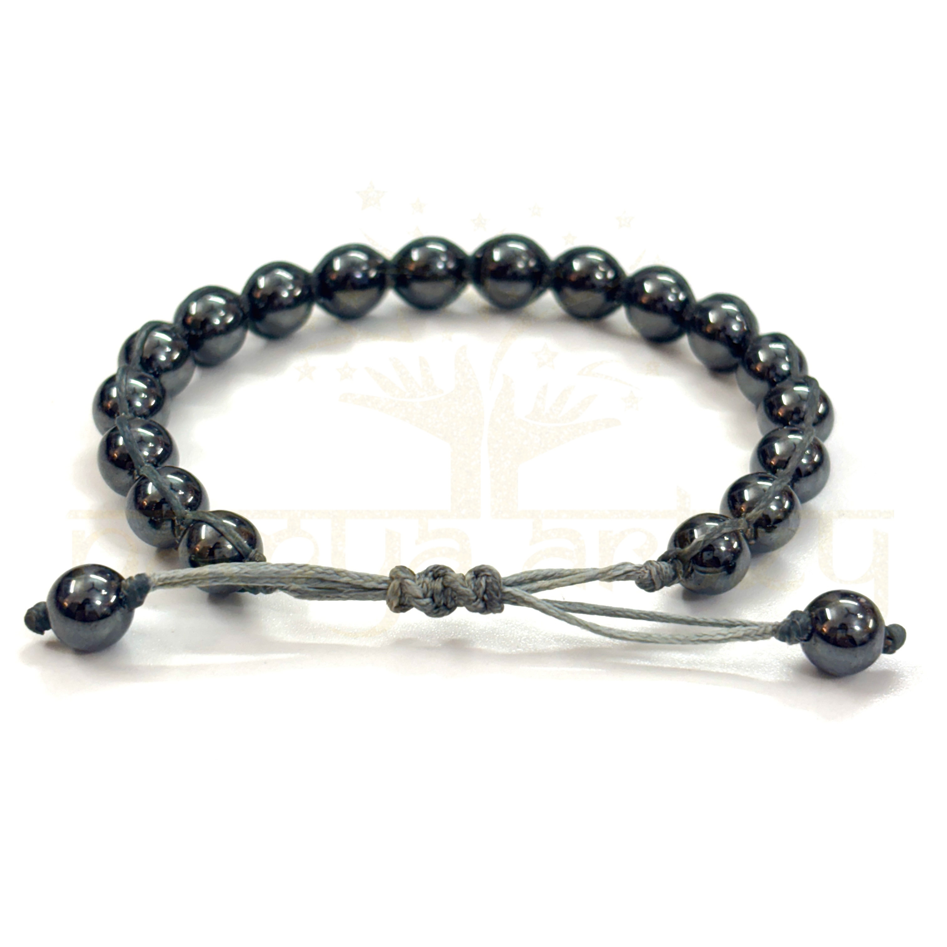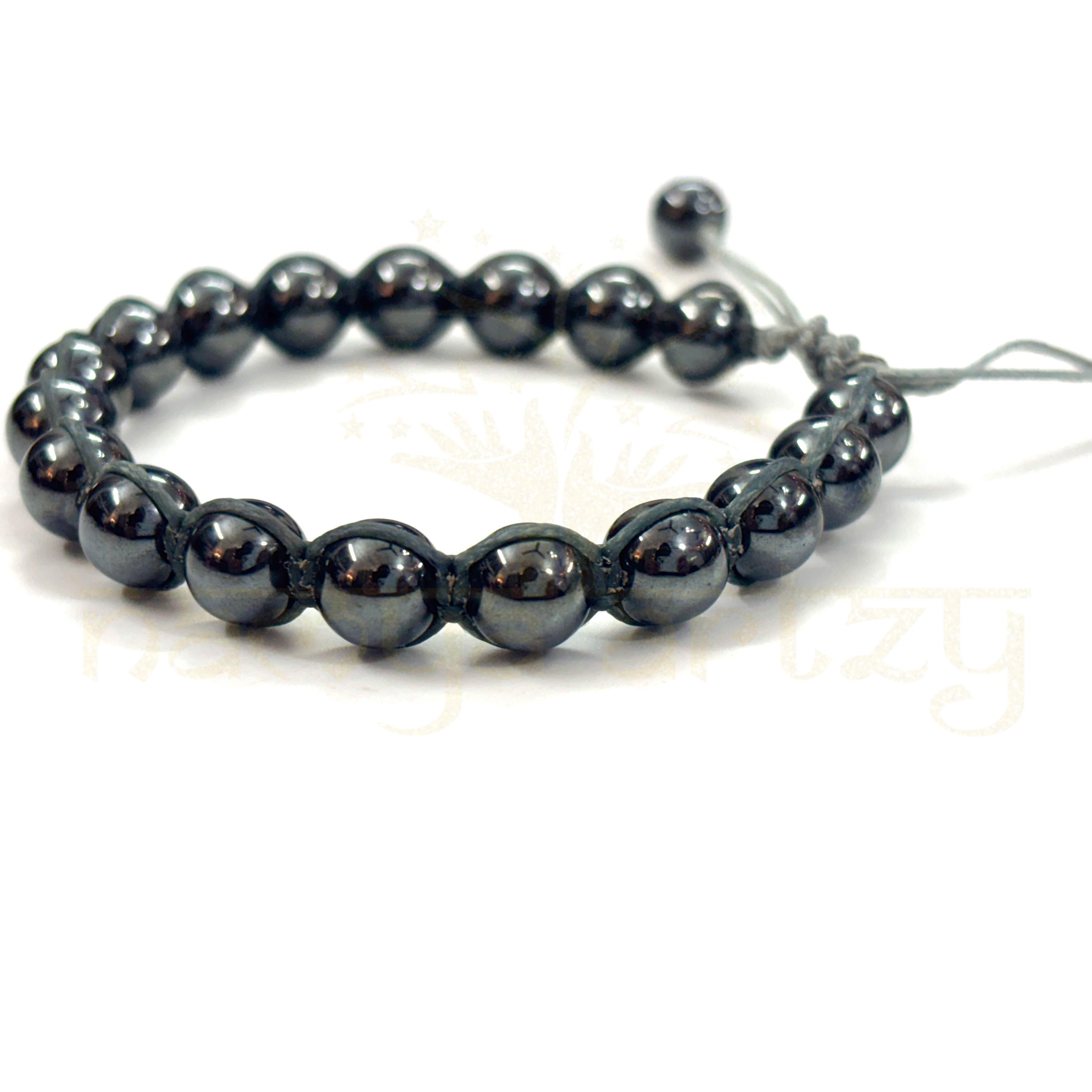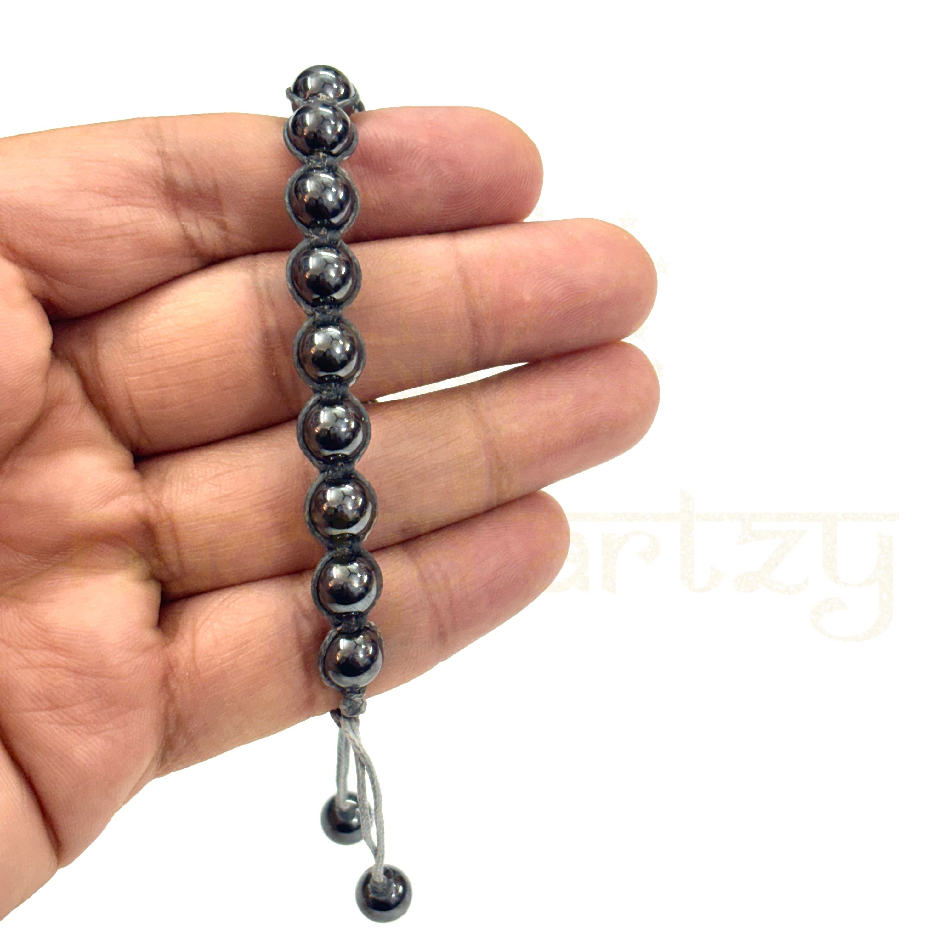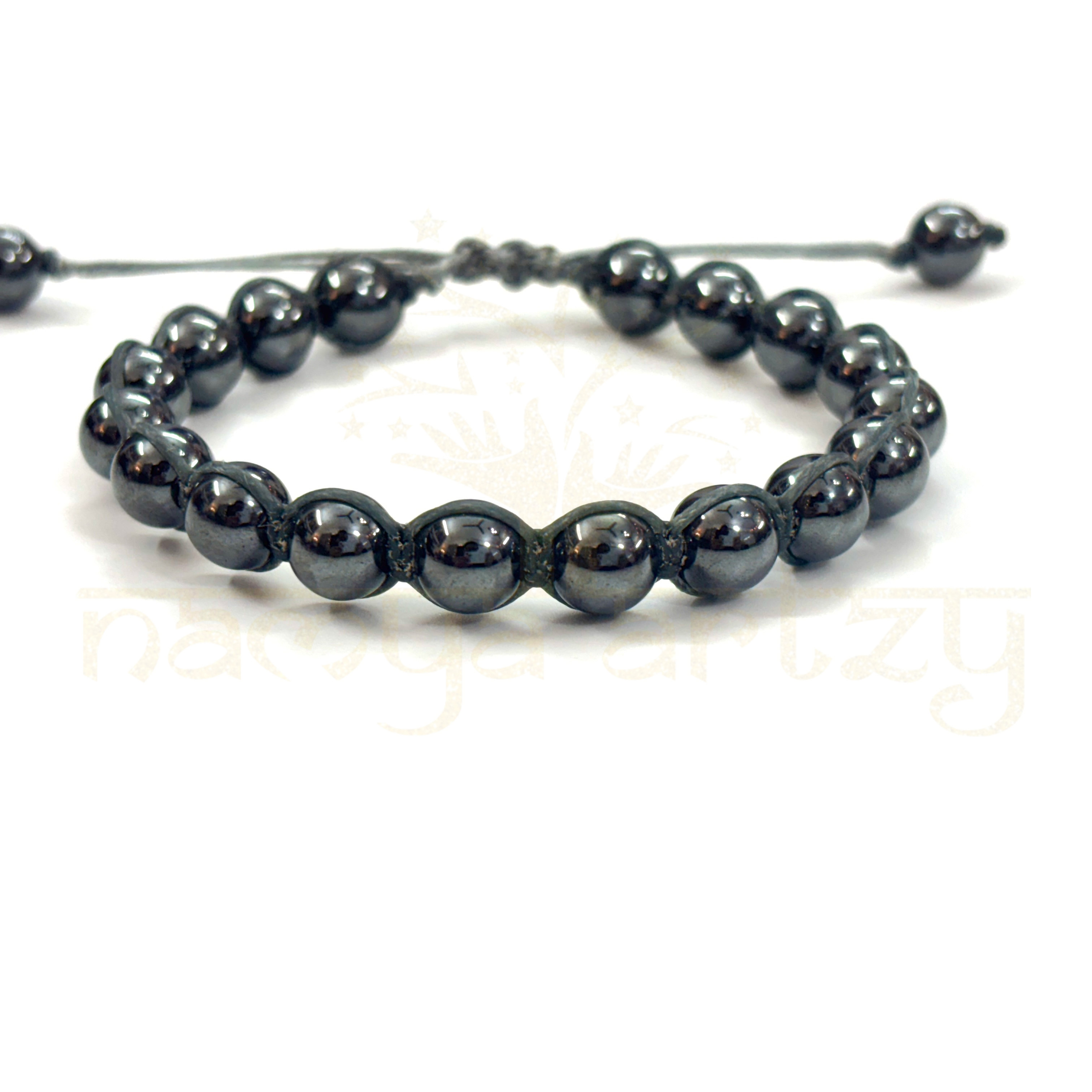 Completely Handmade Two-Sided Hand-Knotted Bracelet, Customized with Beautiful & Natural High Quality 8mm Round Hematite Gemstone, Adjustable Bracelet Drop-Strungs with Same Hematite Semi-Macrame Finish. This healing bracelet has a unique and stylish adju