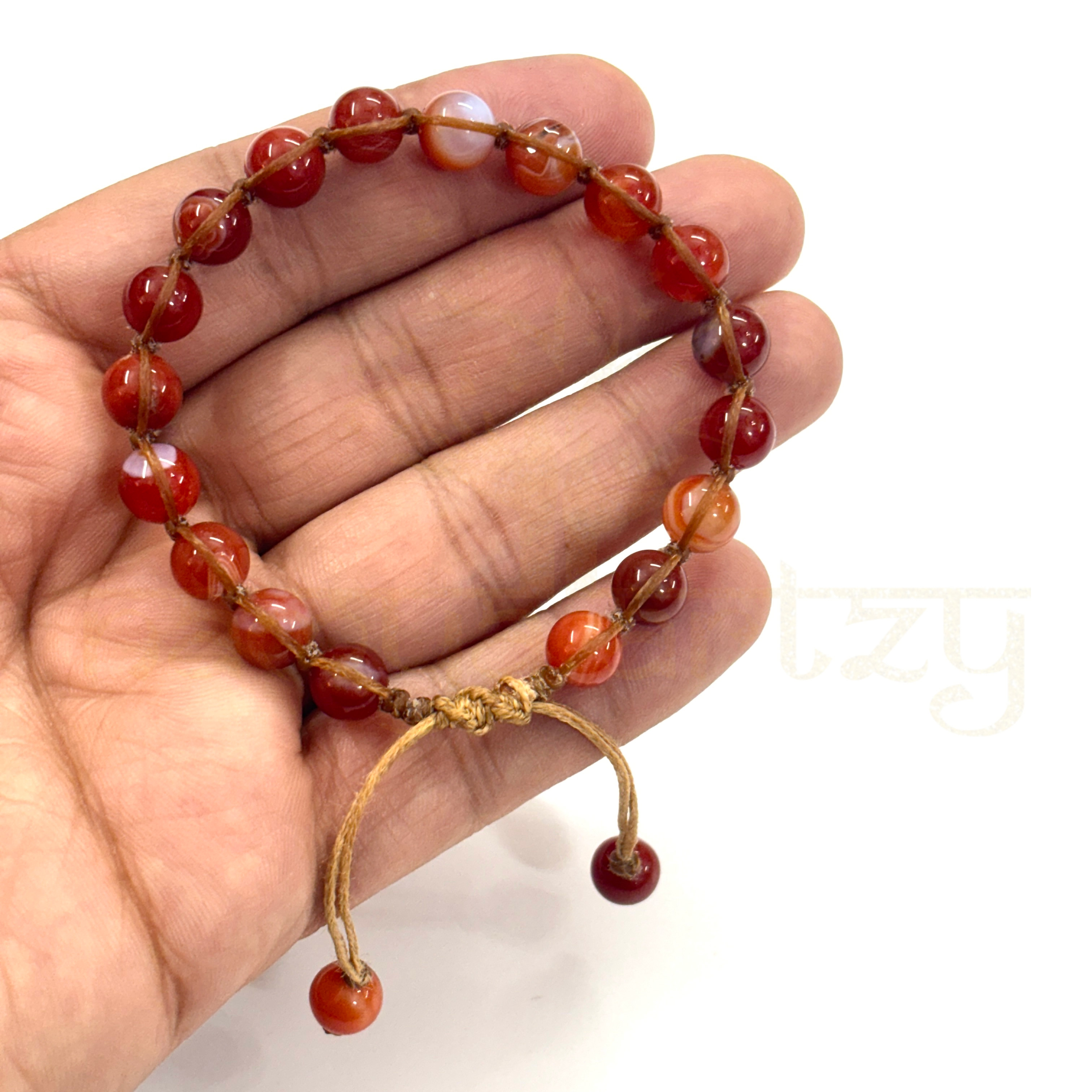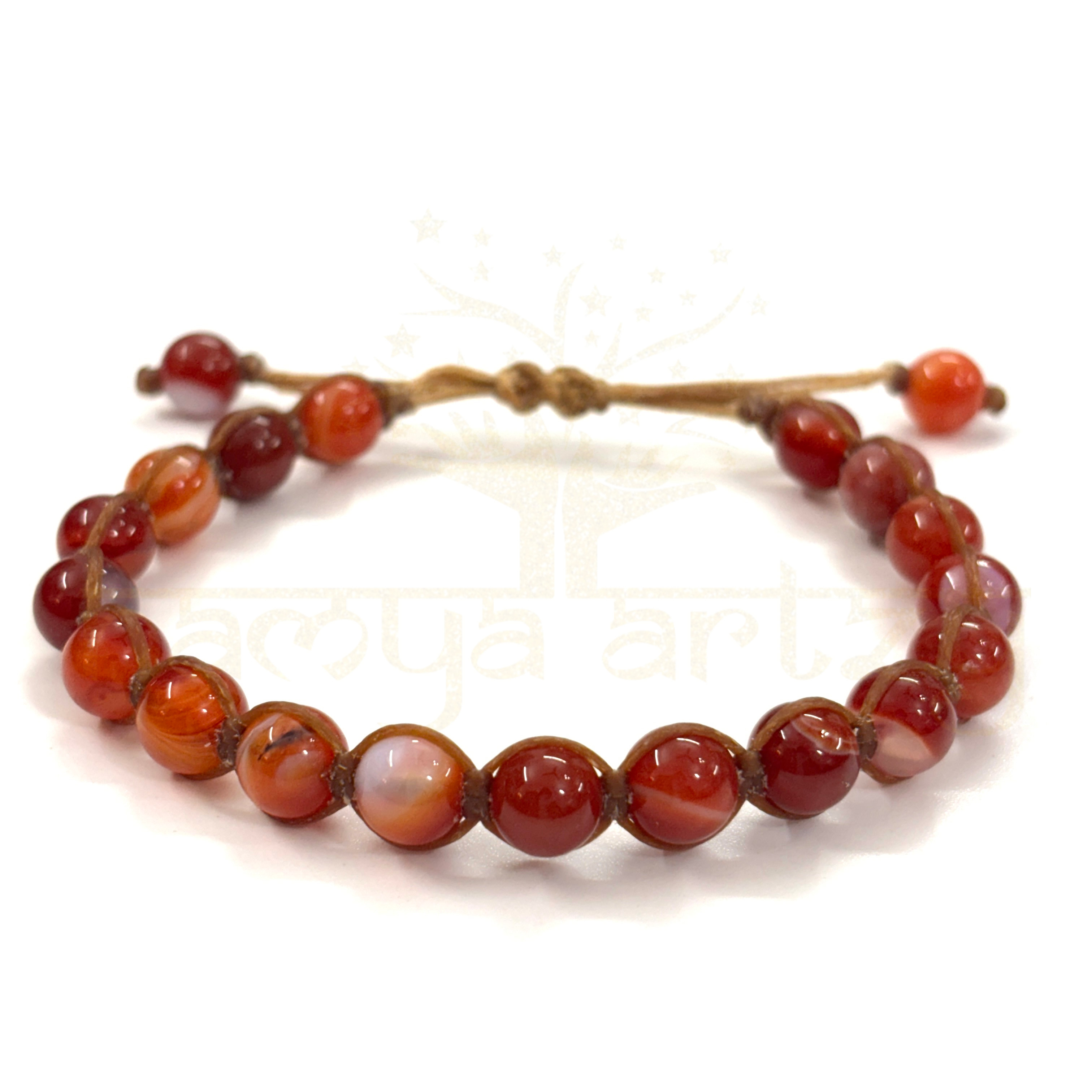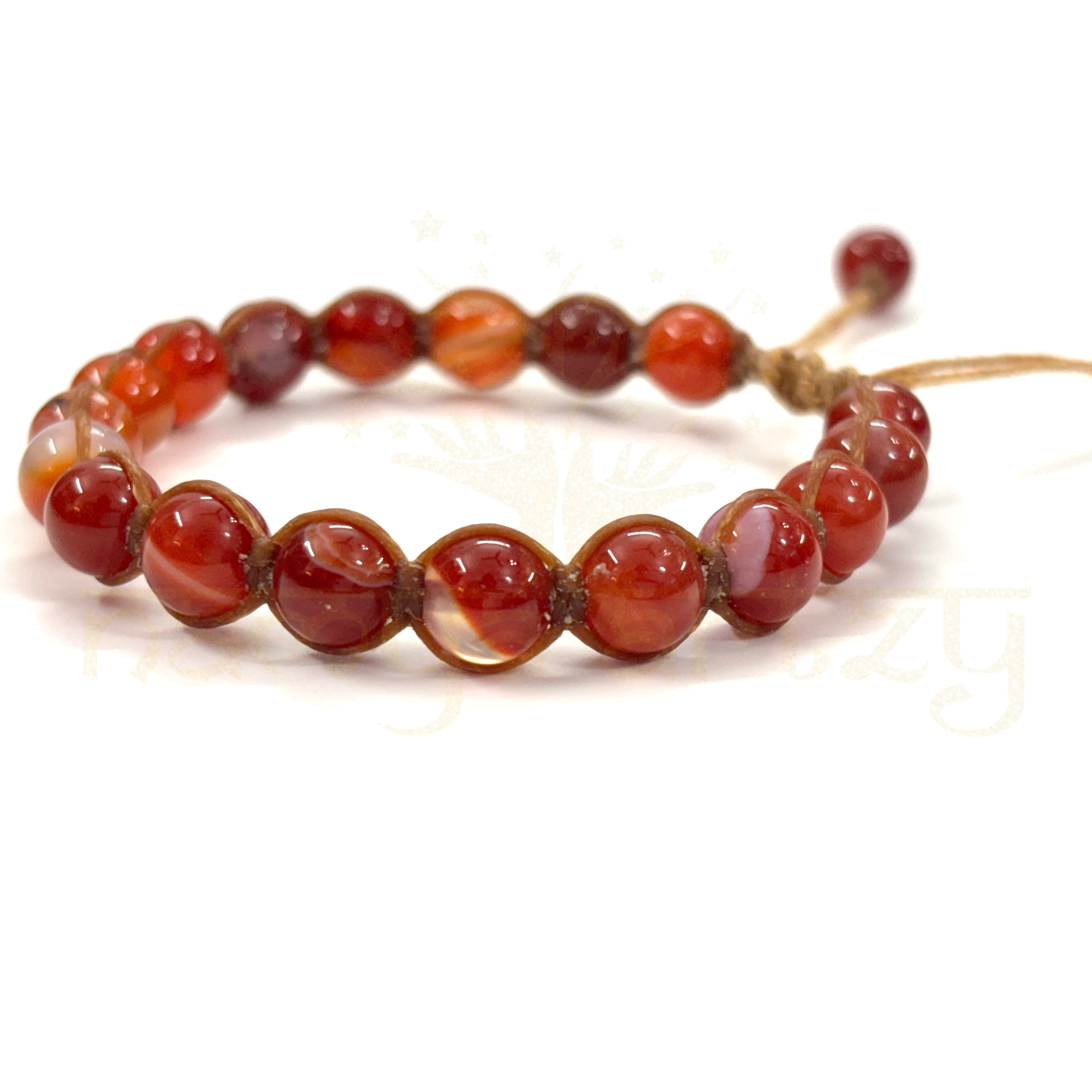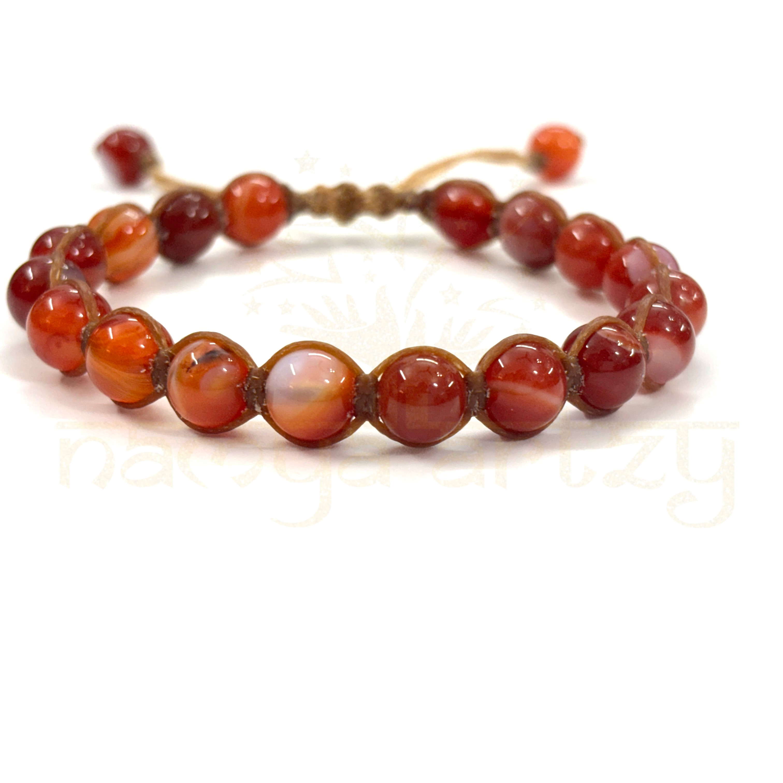 Completely Handmade Two-Sided Hand-Knotted Bracelet, Customized with Beautiful & Natural High Quality 8mm Round Red Agate or Sulemani Hakik Gemstone, Adjustable Bracelet Drop-Strungs with Same Red Agate or Sulemani Hakik Semi-Macrame Finish. This healing